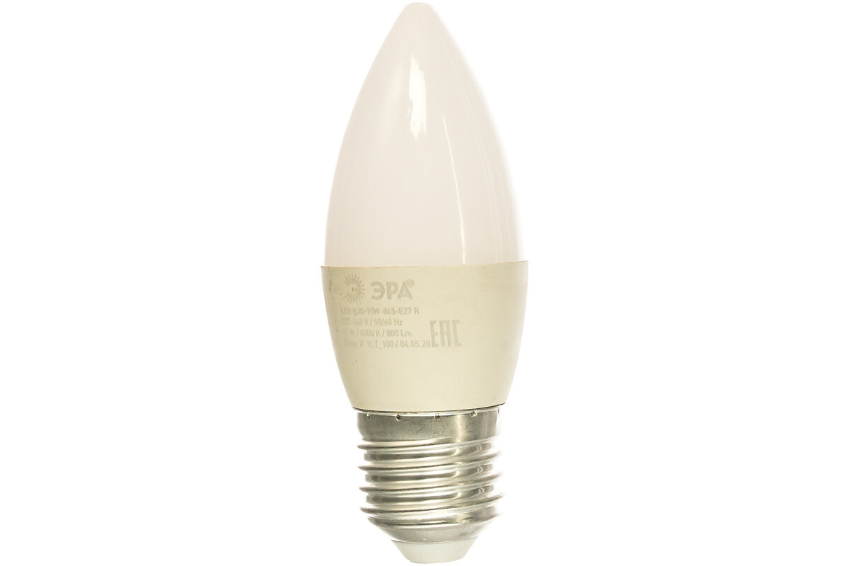 Типы/Лампочки/Светодиодные ЭРА Лампа светодиодная ЭРА E27 10W 6500K матовая B35-10W-865-E27 R Б0045338