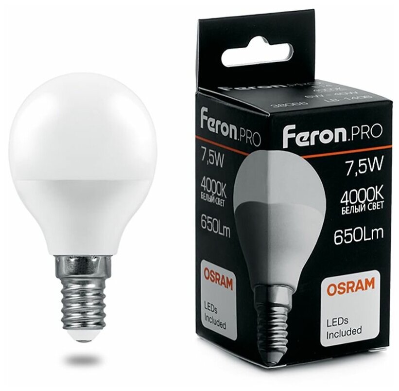 Лампа светодиодная, (7.5W) 230V E14 4000K G45, LB-1407 5шт