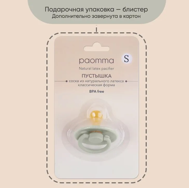 Пустышка Paomma с соской из натурального латекса, S (0-6 мес), Sage