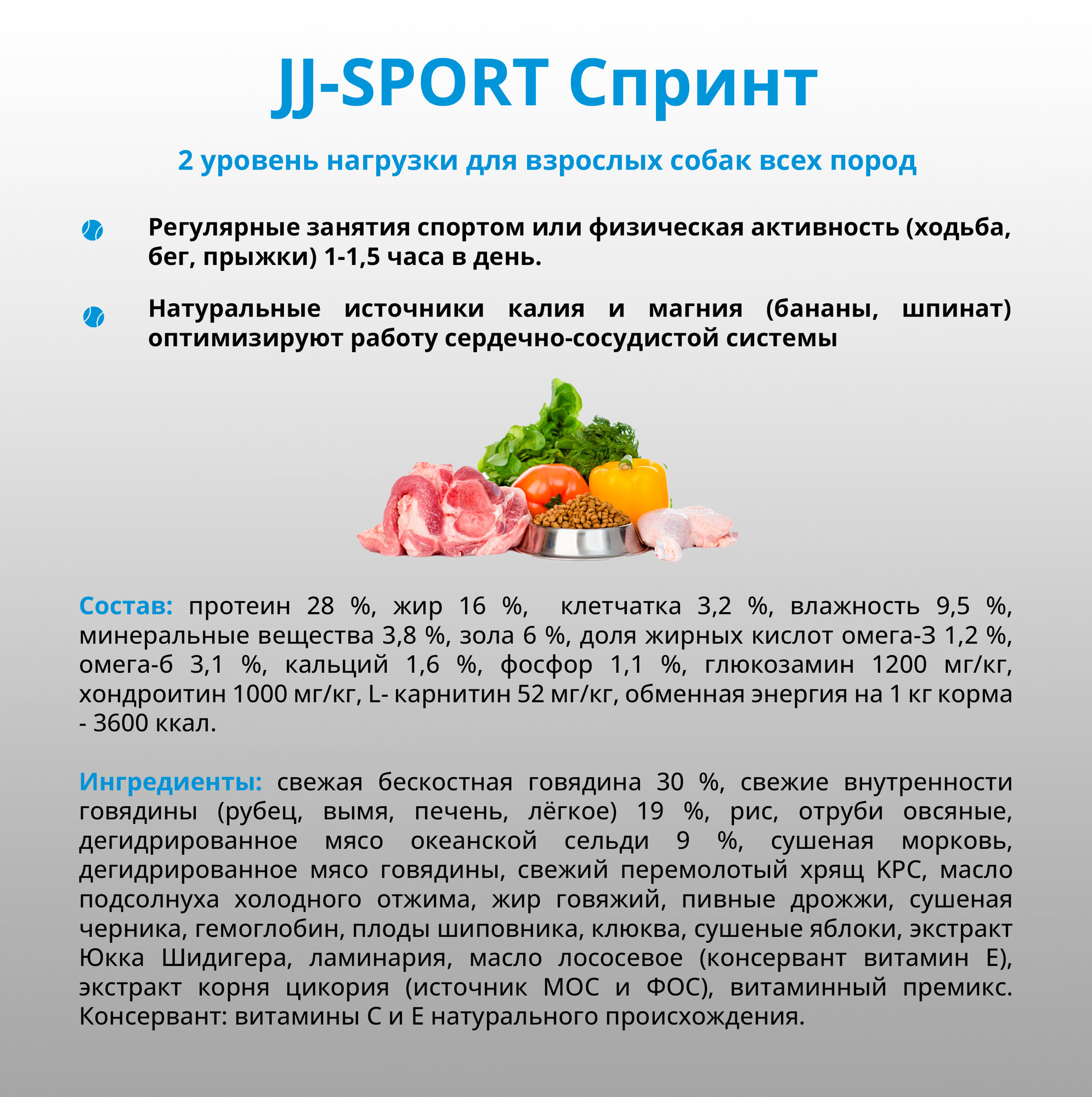 2,5 кг Сухой корм JJ-SPORT Спринт. 2 уровень нагрузки. С Говядиной. Крупная гранула. Холистик