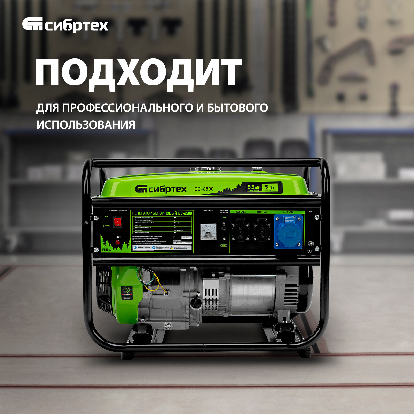 Генератор СИБРТЕХ БС-6500, 5500 Вт