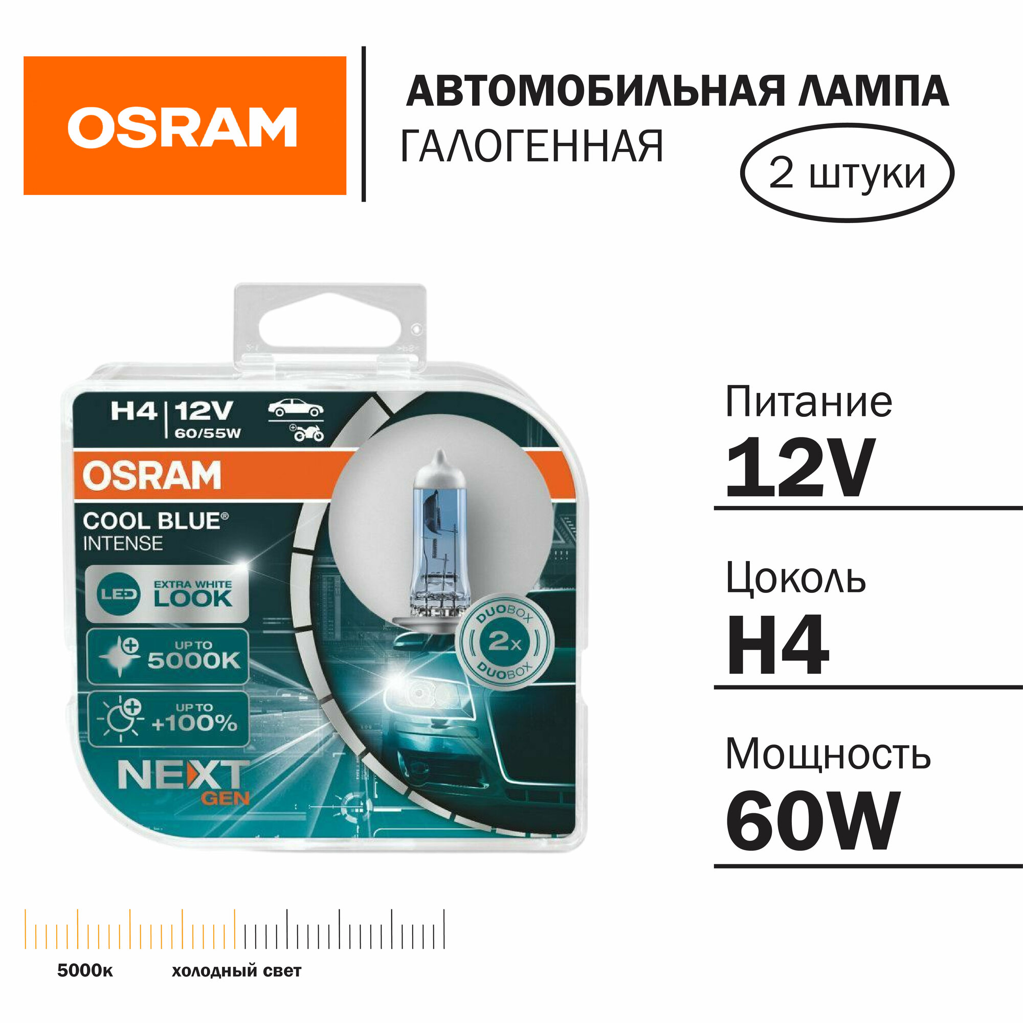 Лампа H4 60/55w 12v Cool Blue Intense (Next Generation) 5000k, Двойная Коробка Osram арт. 64193CBN-HCB