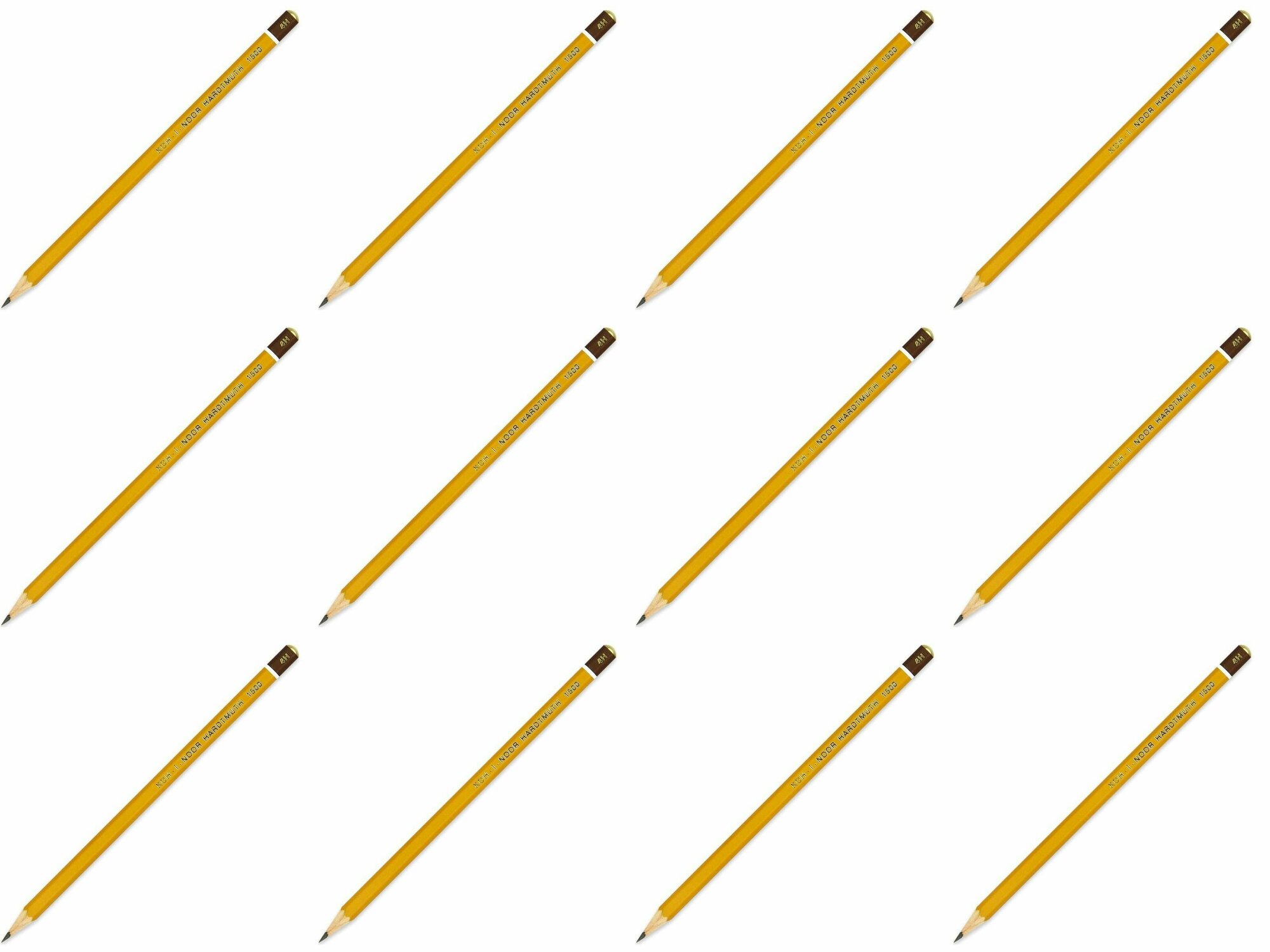 Карандаш чернографитный (простой) Koh-I-Noor 1500 (4Н, корпус желтый, без ластика, заточенный) 12шт. (150004H01170RU)
