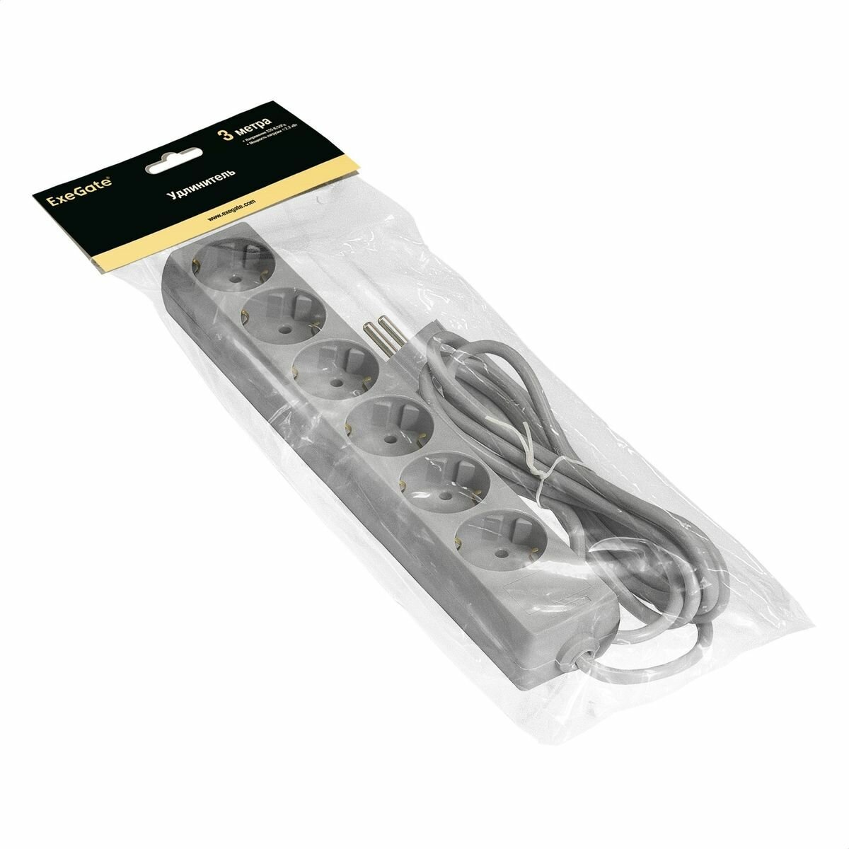 Удлинитель ExeGate ECE-6-3G (6 евророзеток с заземлением, 3м, серый) EX285832RUS