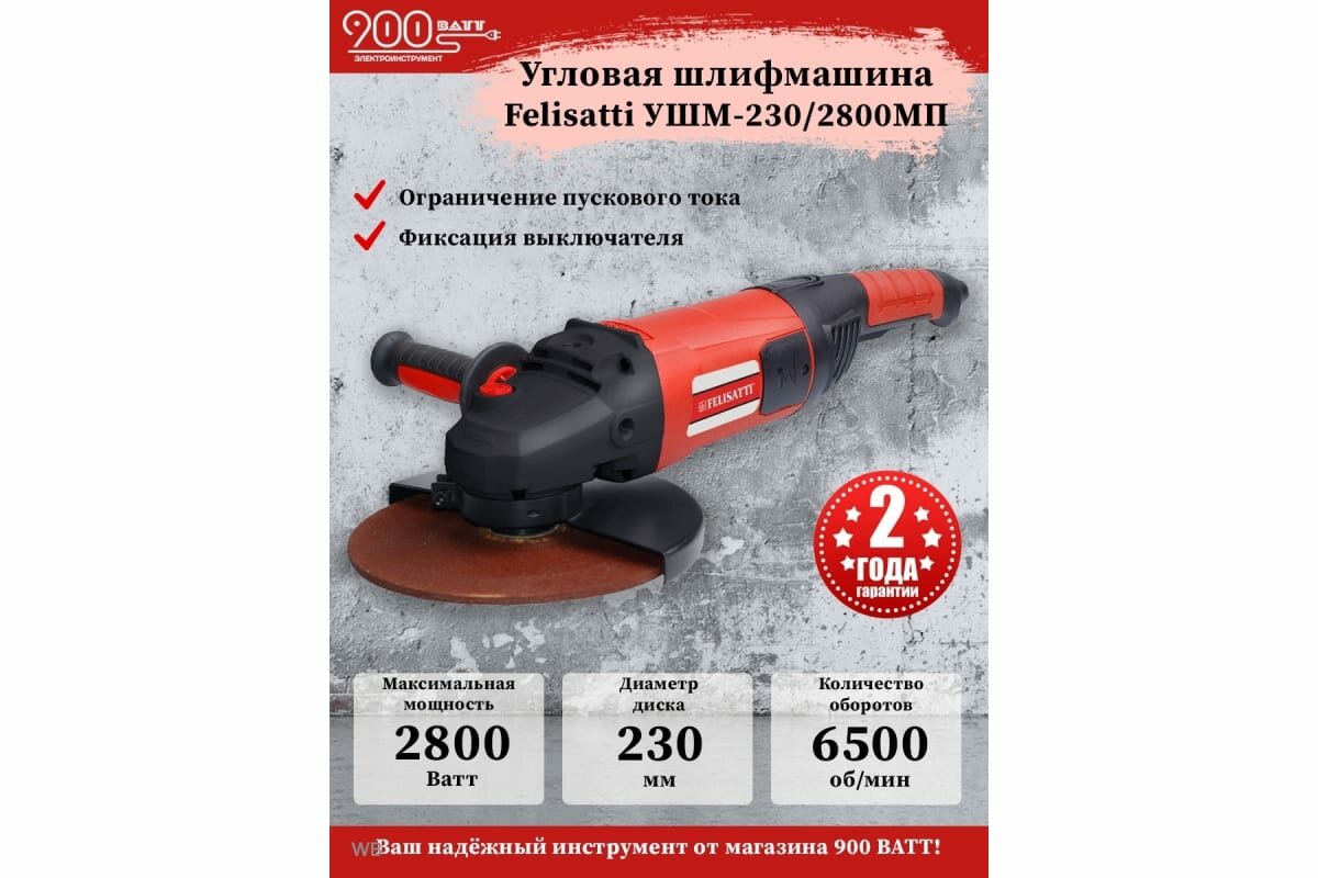 Угловая шлифовальная машина Felisatti УШМ-230/2800MП электроинструмент, подарок на день рождения мужчине, любимому, папе, дедушке, парню