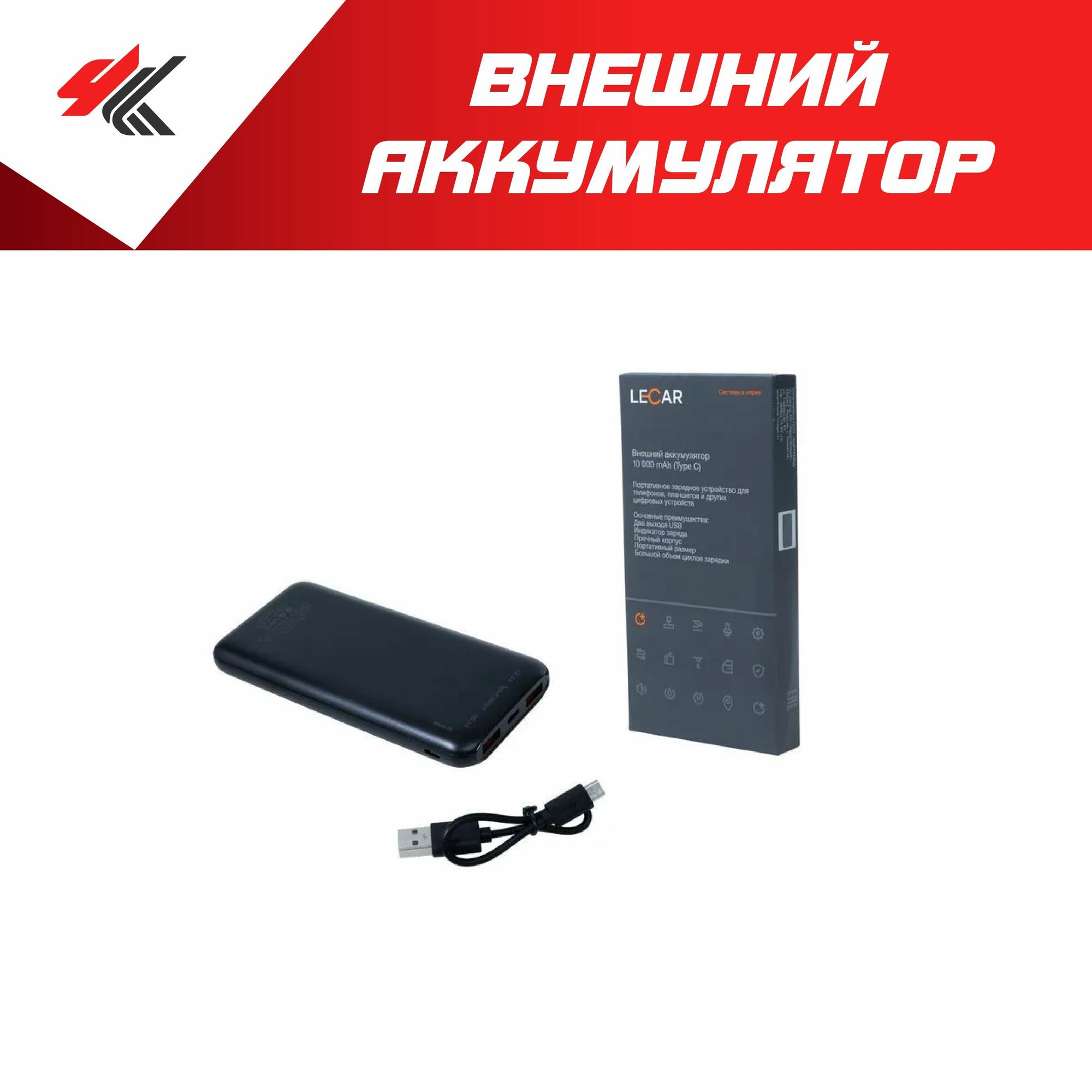 LECAR Аккумулятор внешний универсальный 10 000mAh (USB) "LECAR"