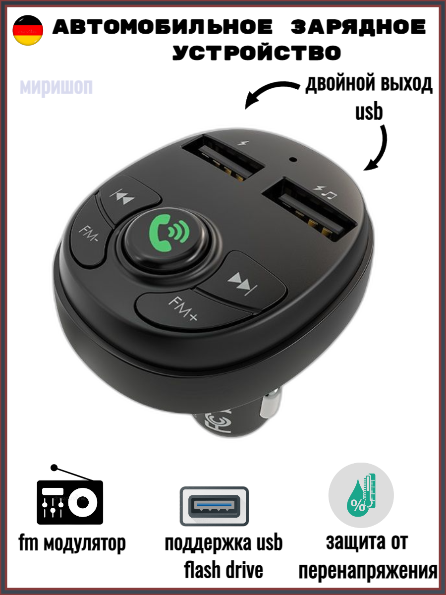 СохранитьАвтомобильное заряд. устр. Borofone BC26 2USB 2.1A + FM-трансмиттер черное интересное:
