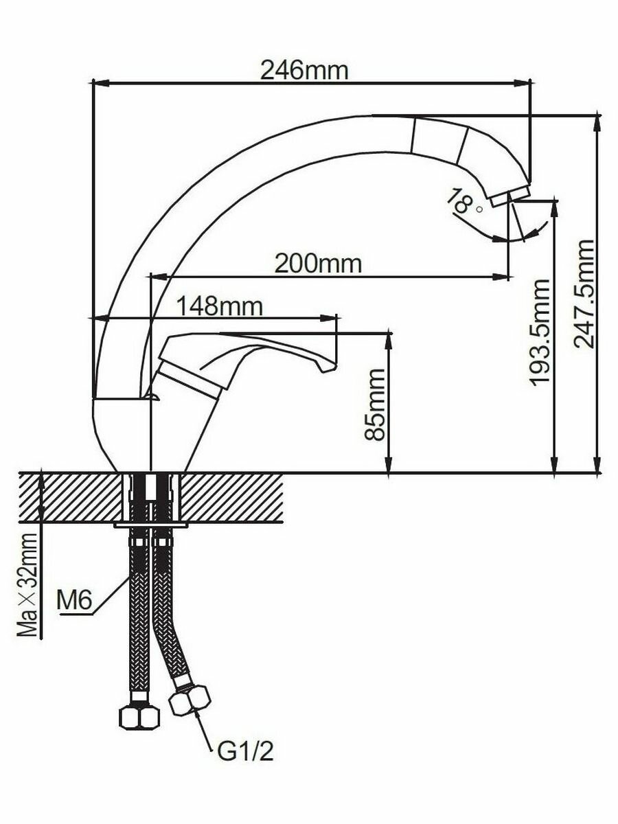 Смеситель на кухню Эверест B59-023 с высоким изливом, картридж 40 мм, хром, крепление гайка