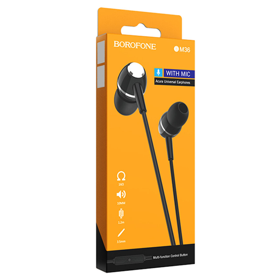 Купить Проводные наушники с микрофоном, внутриканальные, Borofone BM36 Acura, 3.5 Jack, чёрные