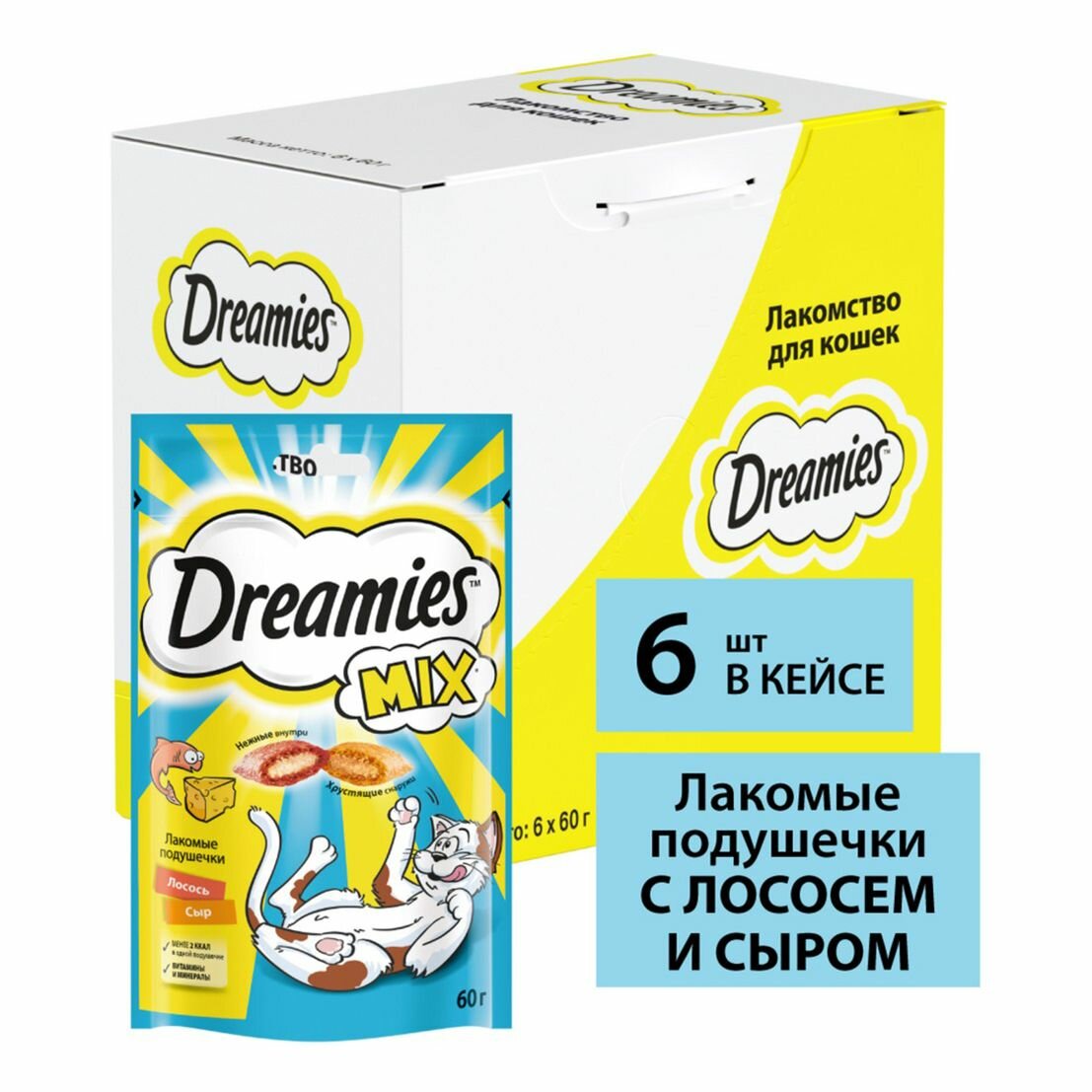 Dreamies MIX лакомство для кошек, подушечки с лососем и сыром (6шт в уп) 60 гр