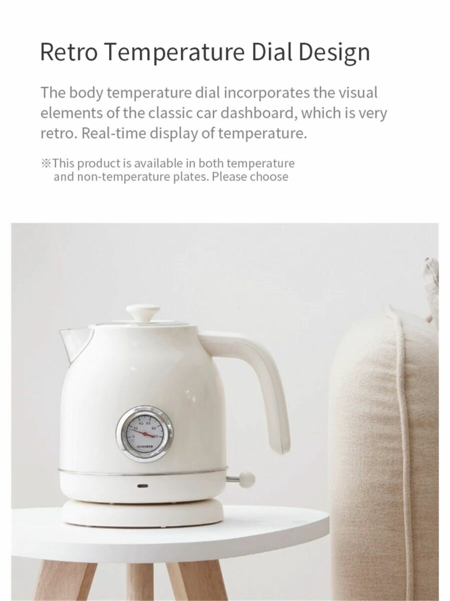 Чайник Xiaomi Qcooker Retro Electric Kettle QS-1701 1.7L с датчиком температуры White !! интересное:
