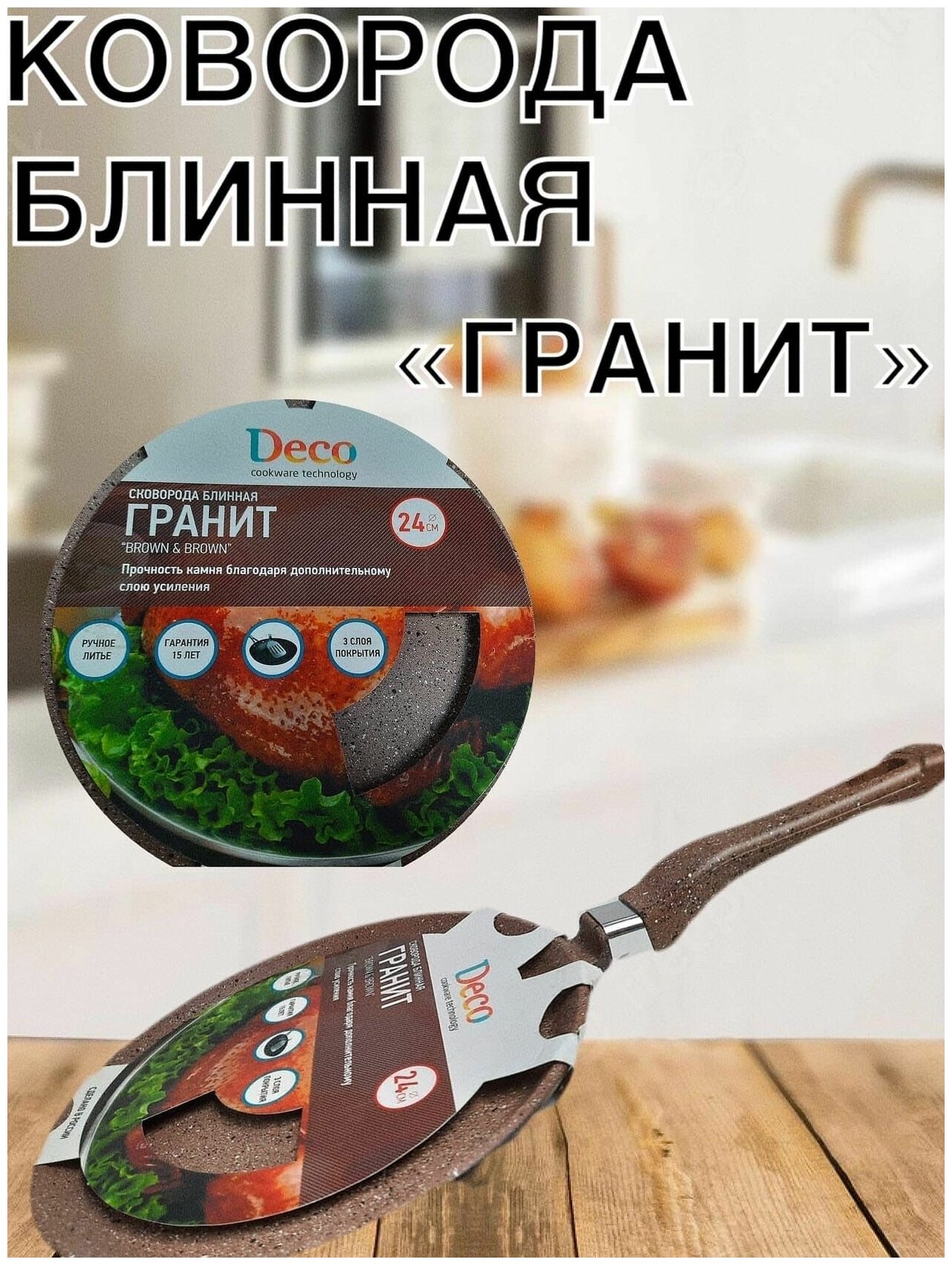 Сковорода антипригарная от Deco Гранит диаметр 24 см , сковорода блинная , сковорода с антипригарным покрытием, сковорода для кухни , блинница интересное: