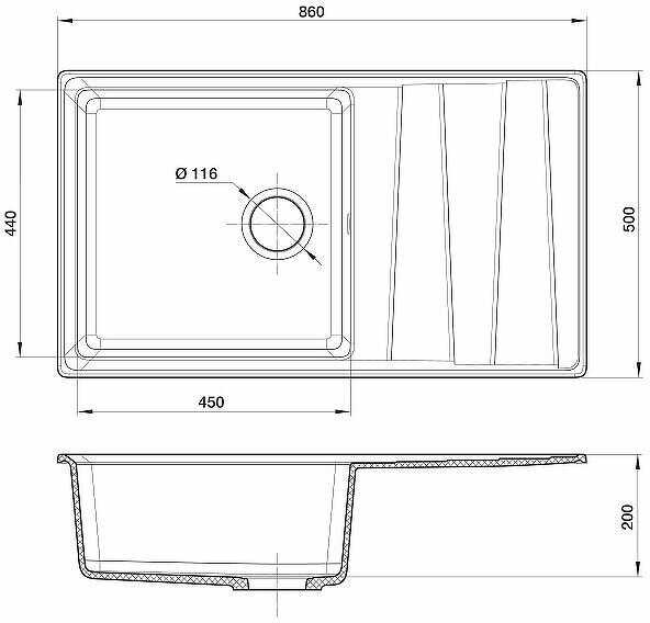 Мойка кухонная GranFest LEVEL GF-LV-860L чаш+кр 860*500мм черный, мрамор