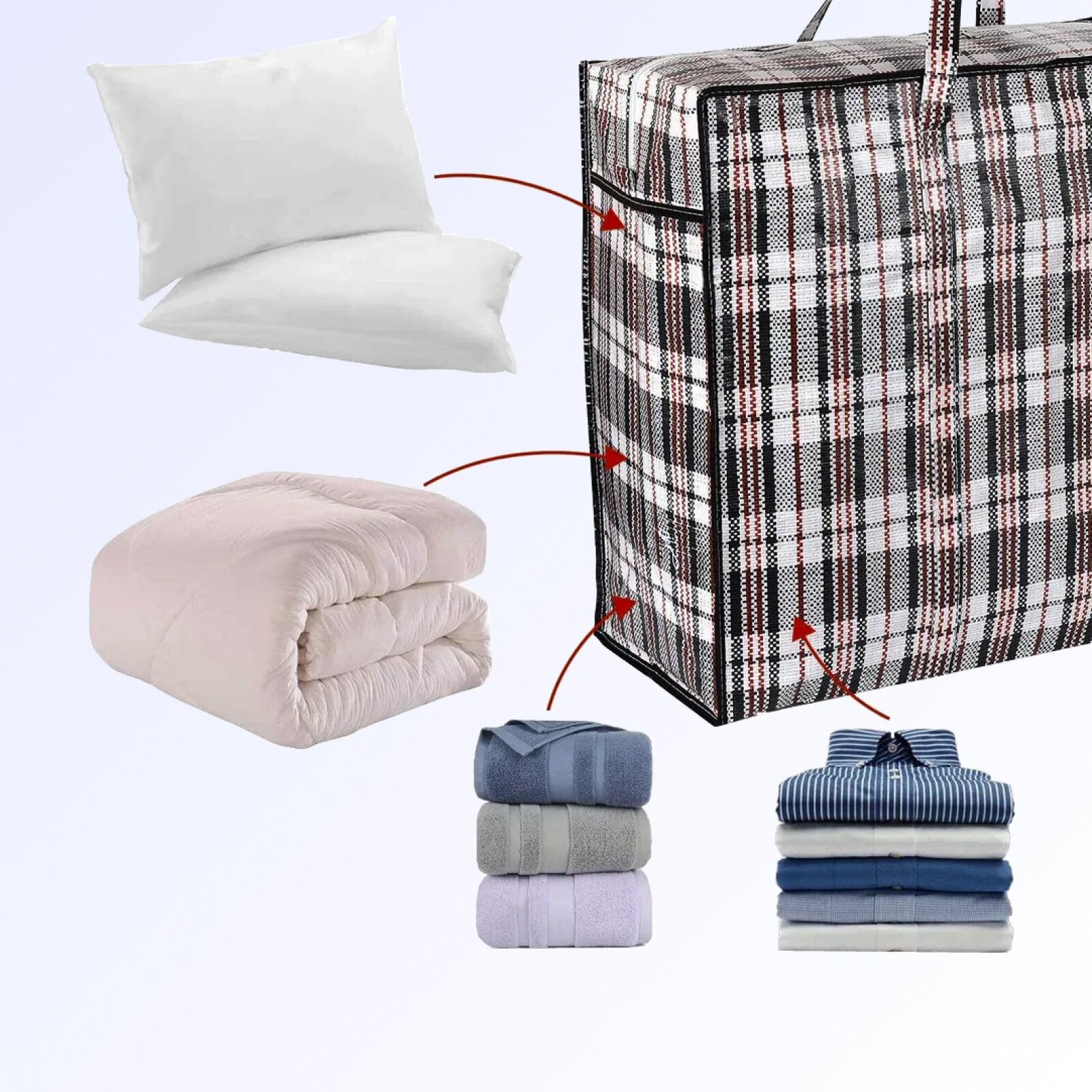 Сумка хозяйственная большая "Сумка-баул складная клетчатая" Сумка базарная, мешок 90x60x30 см. / Сумки для переезда набор 5 шт.