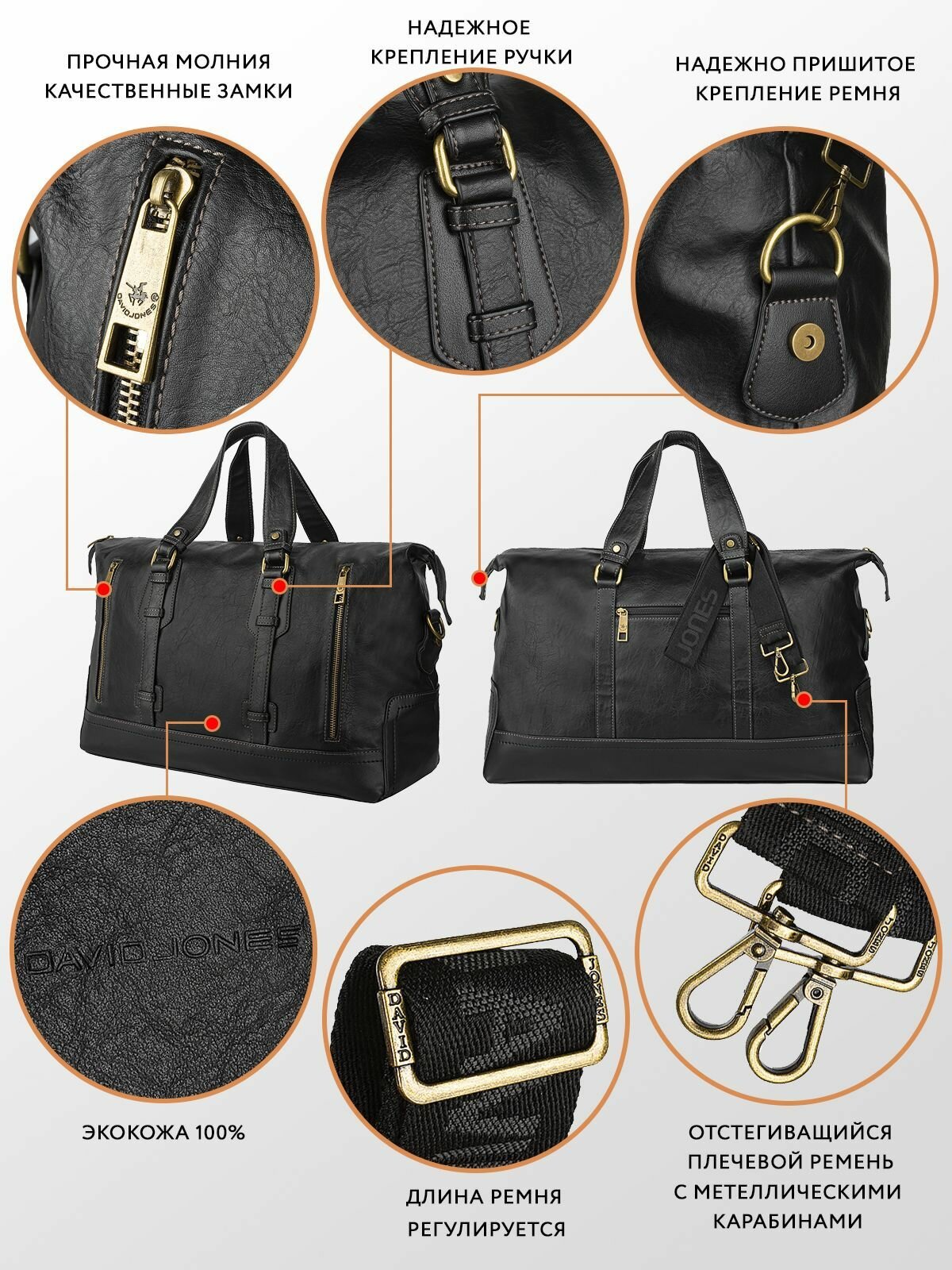 Купить Сумка дорожная David Jones CM2079-1A Сумка шопер, бананка на плечо или через плечо, деловая, модная. Хорошо зарекомендовала себя как ручная кладь для похода, на работу, в офис, спортивная