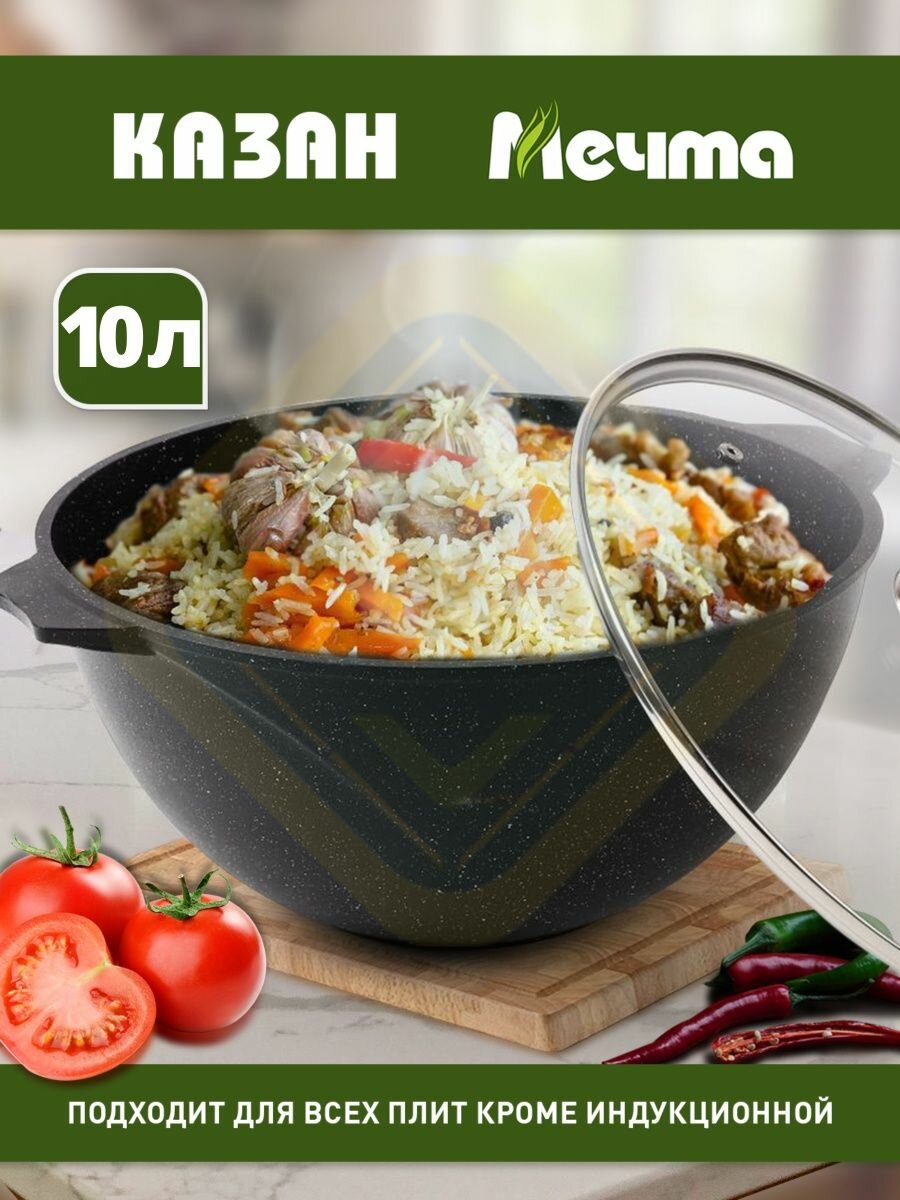 Казан 10л для плова со стеклянной крышкой с покрытием Гранит black 511 802 .