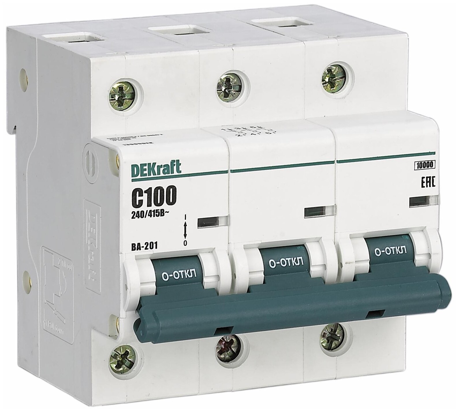 Автоматический выключатель на Din-рейку DEKraft ВА201-3P-100А-C 13009DEK C100А/3п/ 10 кА