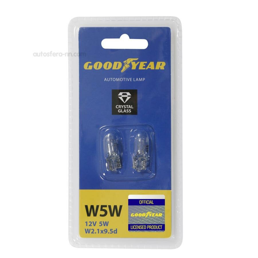 GOODYEAR (аксессуары) GY015206 Лампа накаливания Goodyear W5W 12V 5W W2.1x9.5d (блистер: к-т 2шт.)