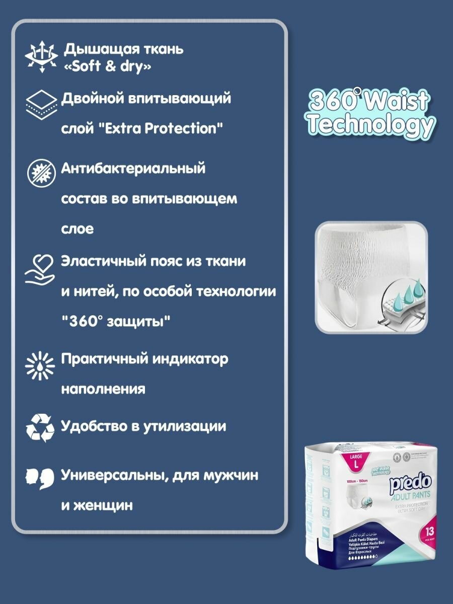 Подгузники-трусы Predo Для взрослых, 13 шт, размер L интересное: