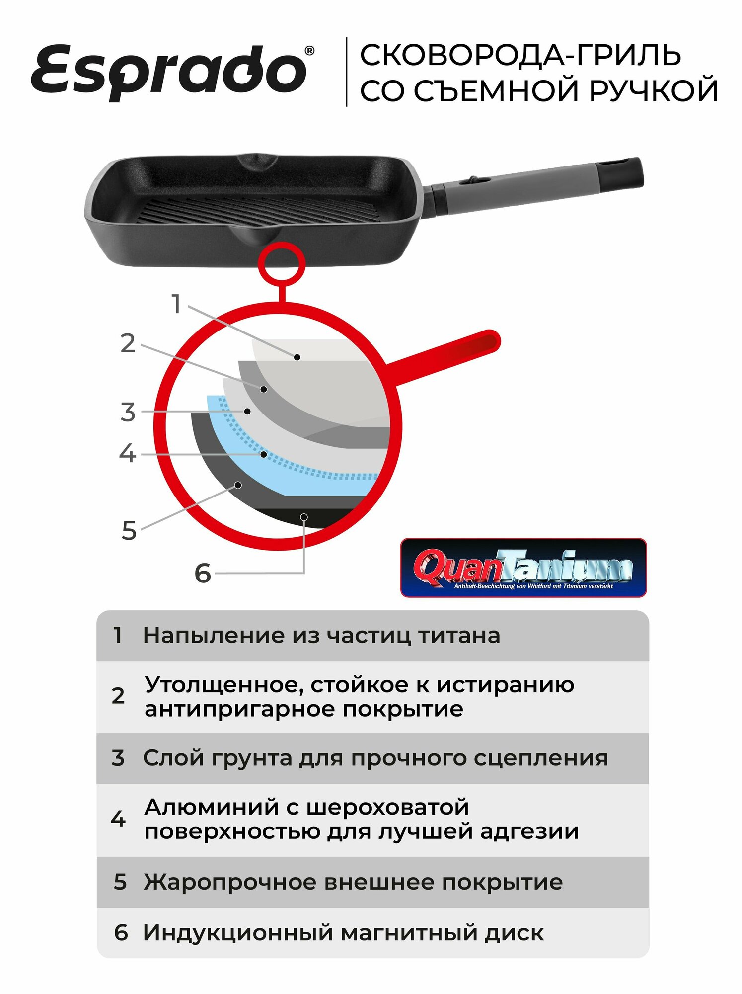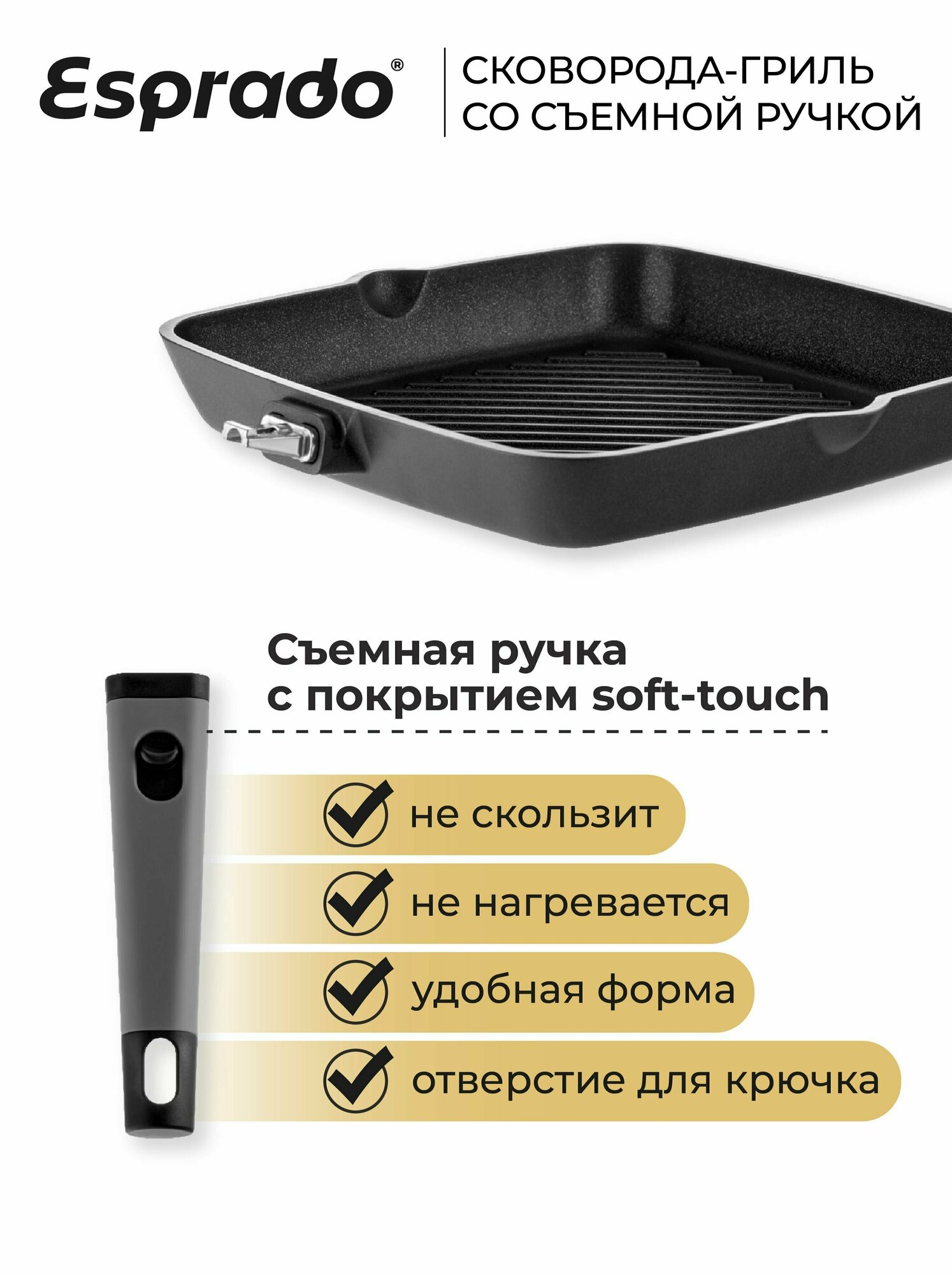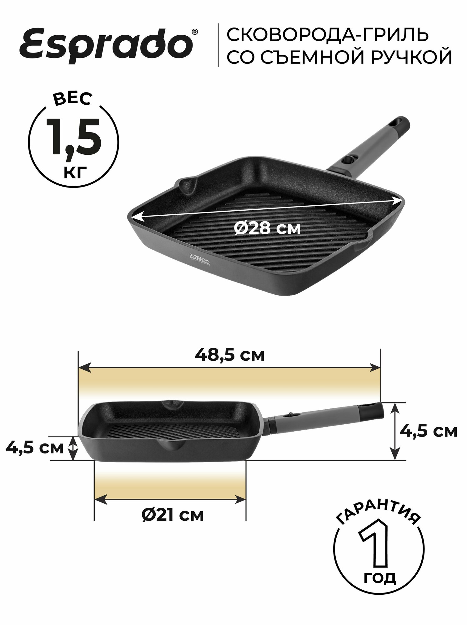 Сковорода-гриль ESPRADO Carne, индукция, 28 см, со съемной ручкой