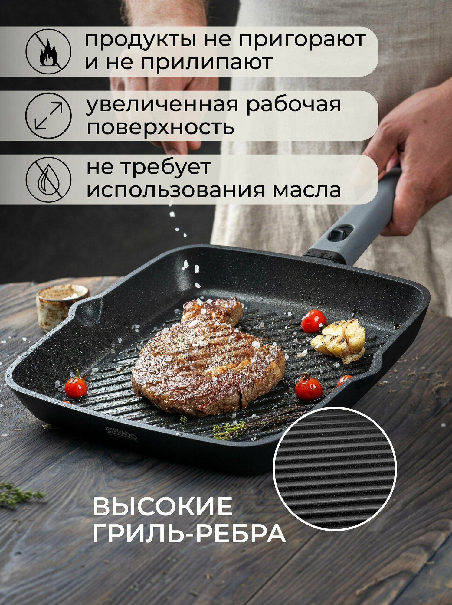 Сковорода гриль , сковорода со съемной ручкой , сковорода 28 см, сковорода из алюминия, сковорода для индукционной плиты, сковородка, гриль сковорода , сковорода с антипригарным покрытием, Carne Esprado