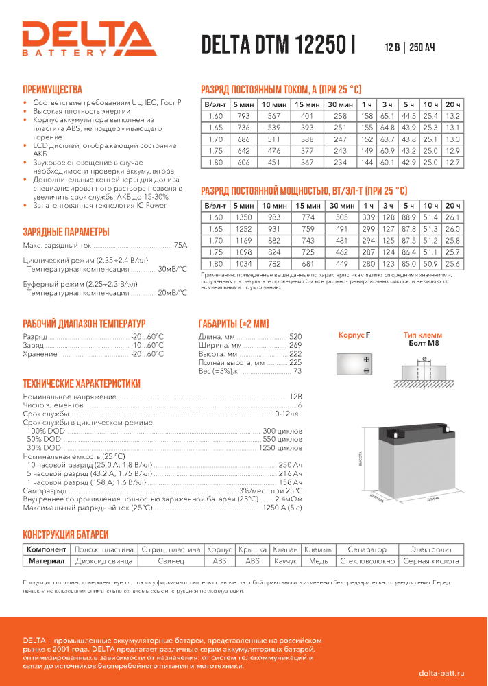 | Производитель | DELTA Battery |