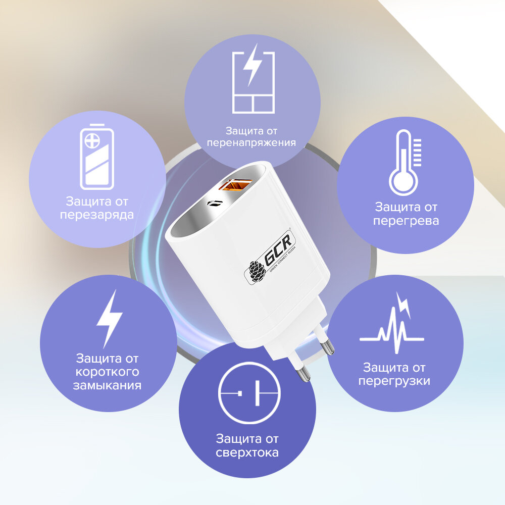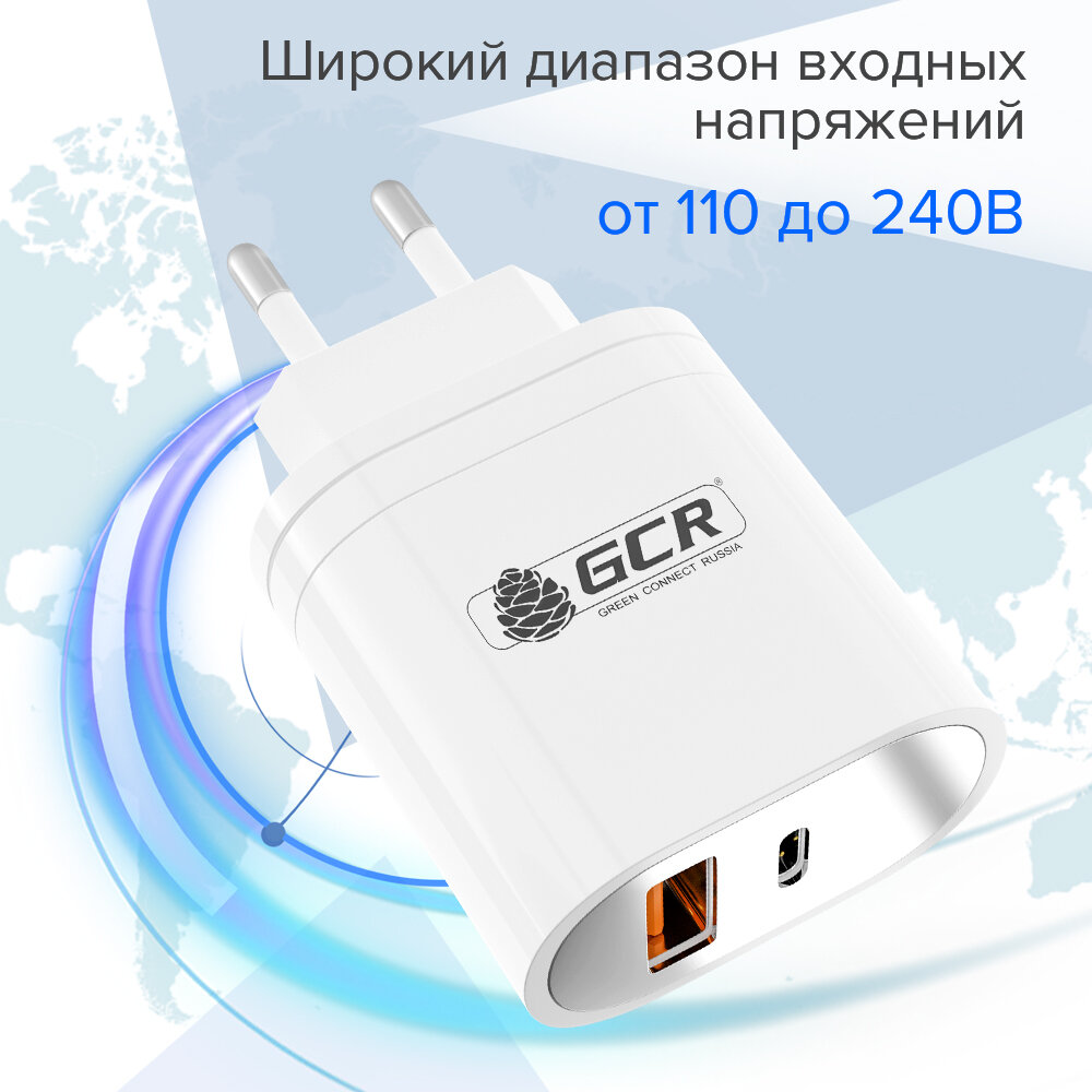 GCR Сетевое зарядное устройство USB + Type C 36W PD 18W + Quick Charge 3.0 интересное: