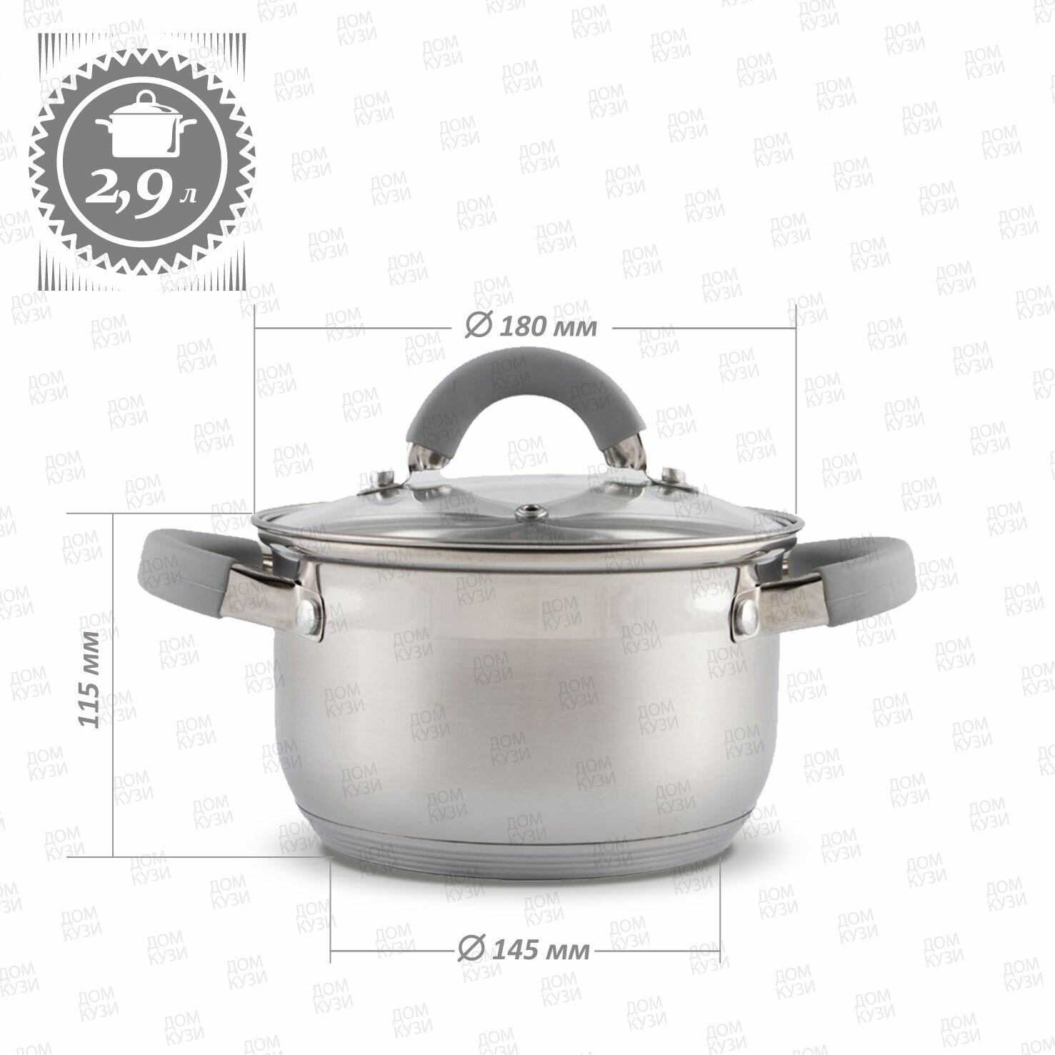 Кастрюля из нержавеющей стали 2,9 литра со стеклянной крышкой для всех видов плит