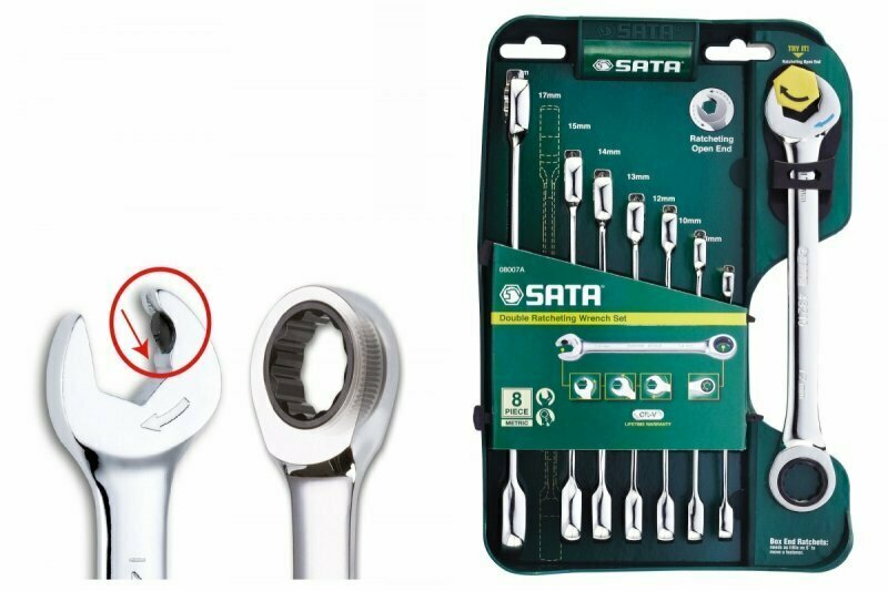 Набор комбинированных ключей Sata с двухсторонней трещоткой