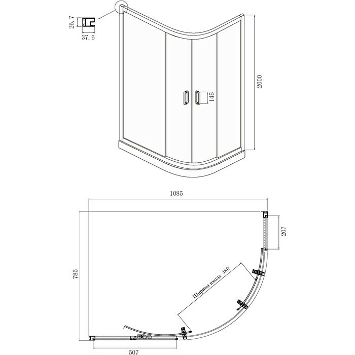 СохранитьДушевой уголок Ambassador Kingston 110х80 14011210 профиль Черный стекло прозрачное интересное: