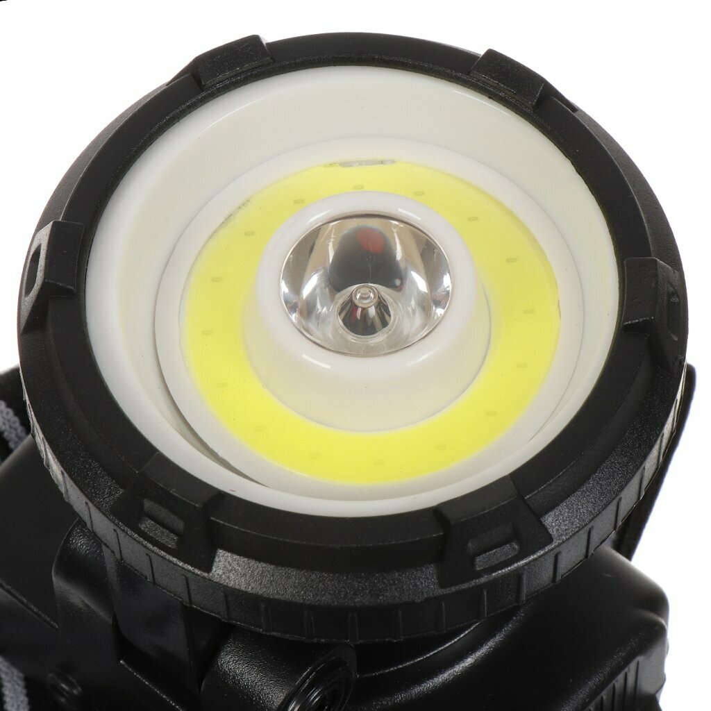 ULTRAFLASH (14452) LED5368 (фонарь налобн. аккум 220В, черный, 1 Ватт LED+1,5Ватт COB, 2 реж, пл, бокс)