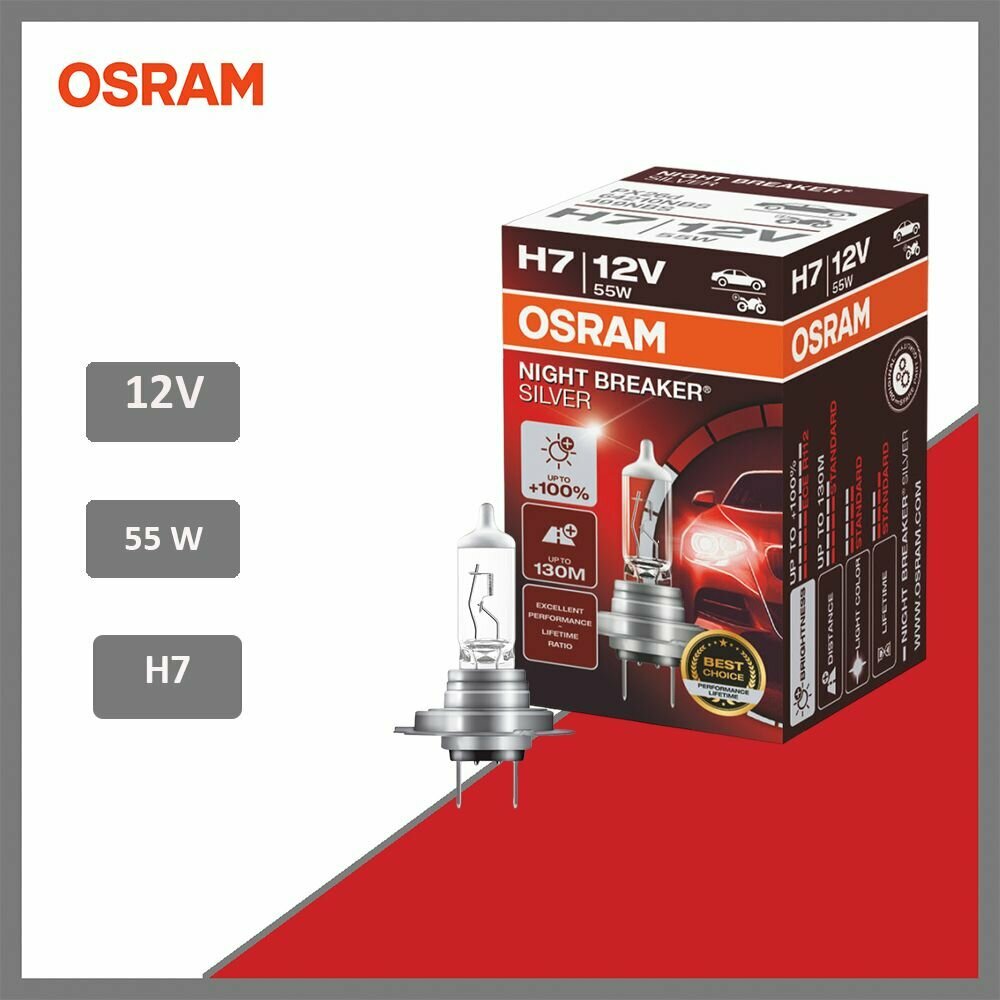 Лампа h7 12v 55w px26d night breaker silver +100% больше света 1 шт. Osram 64210NBS01B