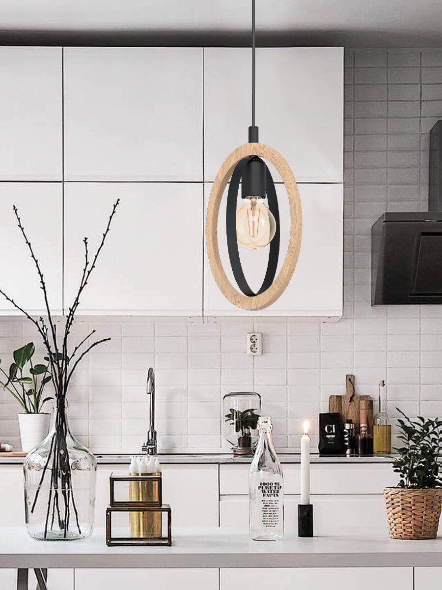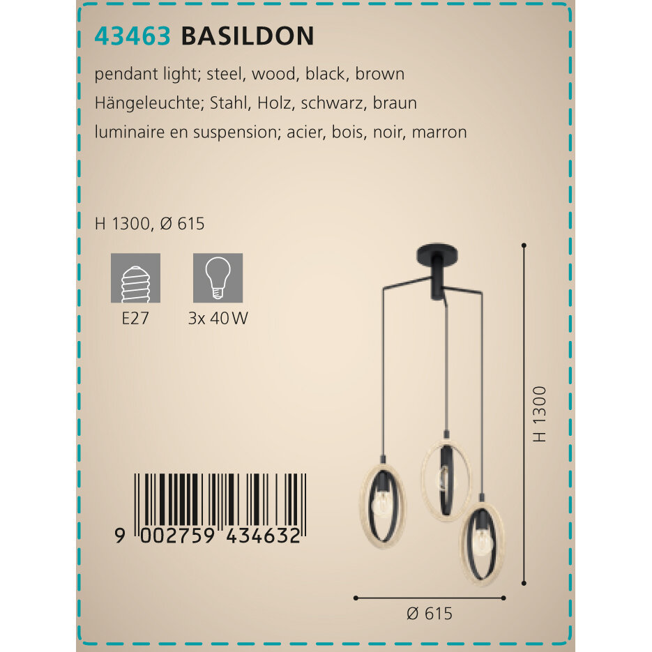Eglo 43463 Подвес BASILDON, 3x40W (E27), 615, H1300, сталь, черный/дерево, коричневый 43463