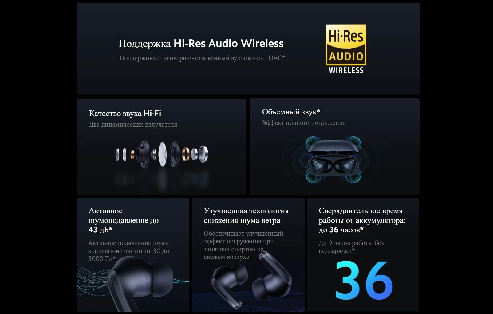 | Функции | Multipoint / Talk through (режим прозрачности) / объемный звук / поиск наушников |