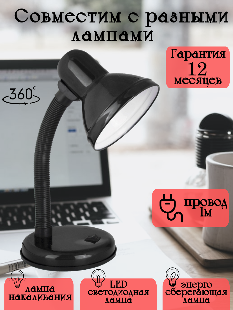 Лампа офисная Ultraflash UF-301, E27, 60 Вт, черный