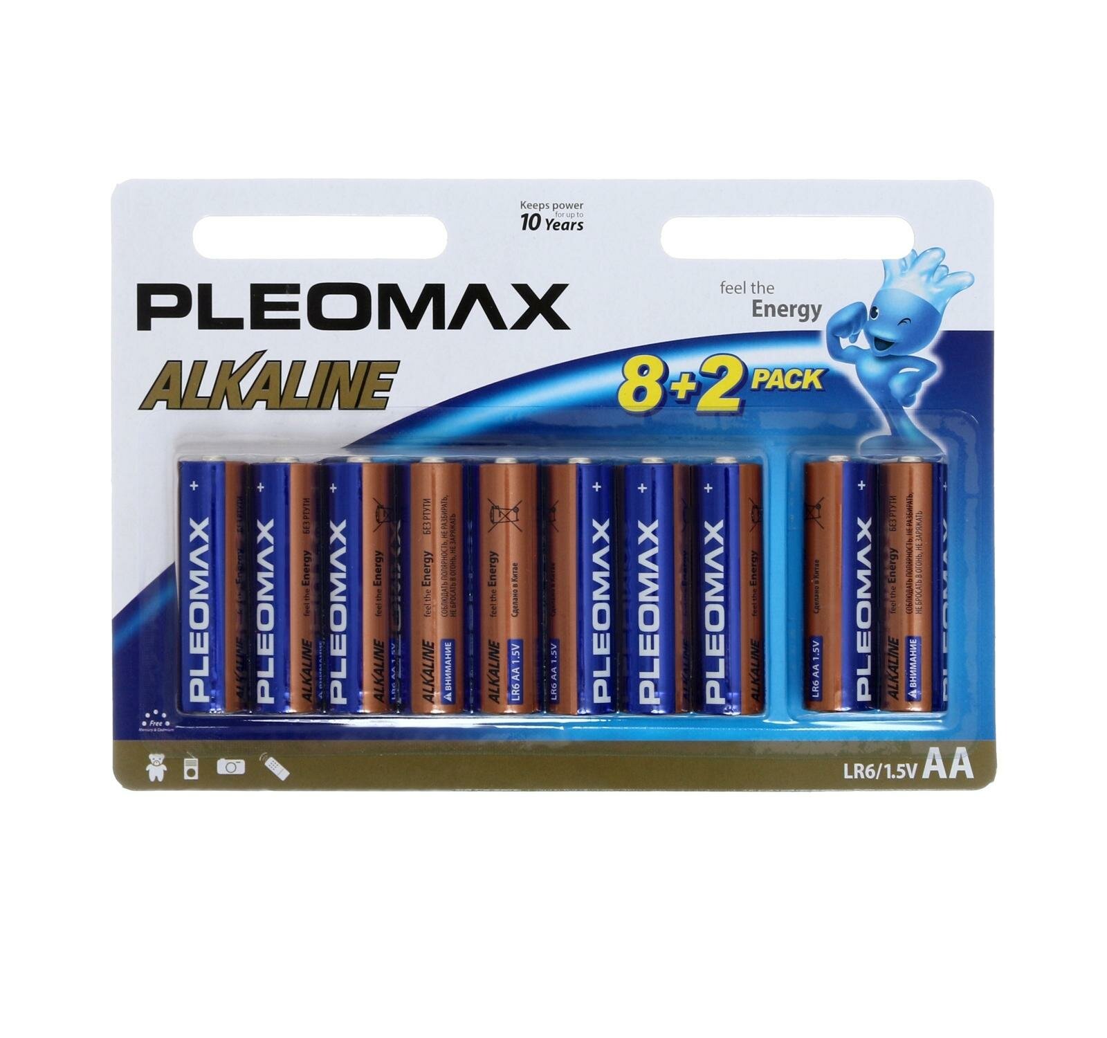 Купить Батарейка алкалиновая Pleomax, AA, LR6-10BL, 1.5В, блистер, 8+2 шт. Pleomax 475491