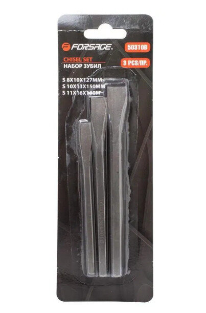 Набор зубил плоских, 3пр: 10х127 мм, 13х150 мм, 16х160 мм, в блистере FORSAGE F-50310B | цена за 1 шт