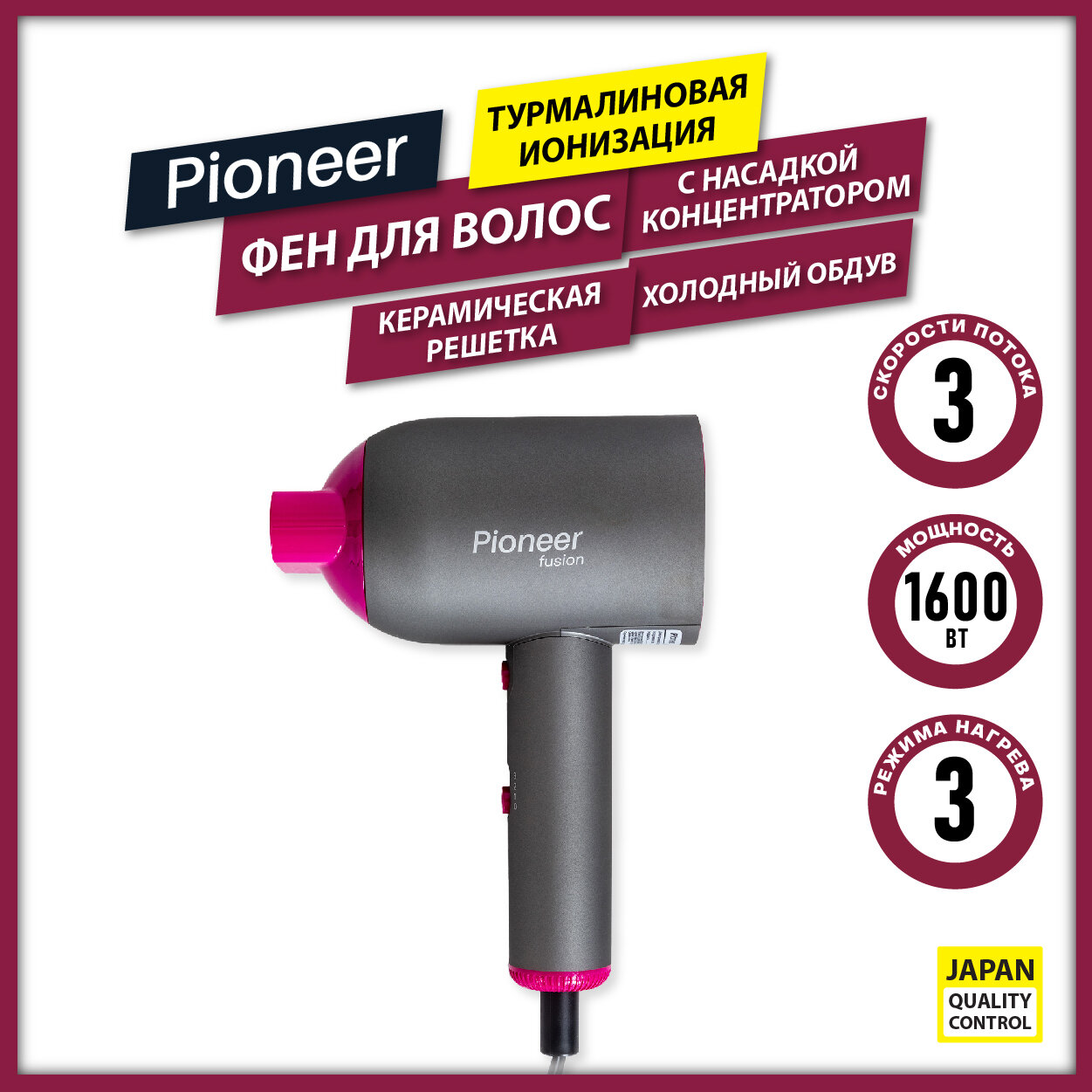 Фен для волос Pioneer с 3 режимам скоростями воздушного потока и 3 режимами нагрева, керамическая решетка с турмалиновым напылением, 1600 Вт