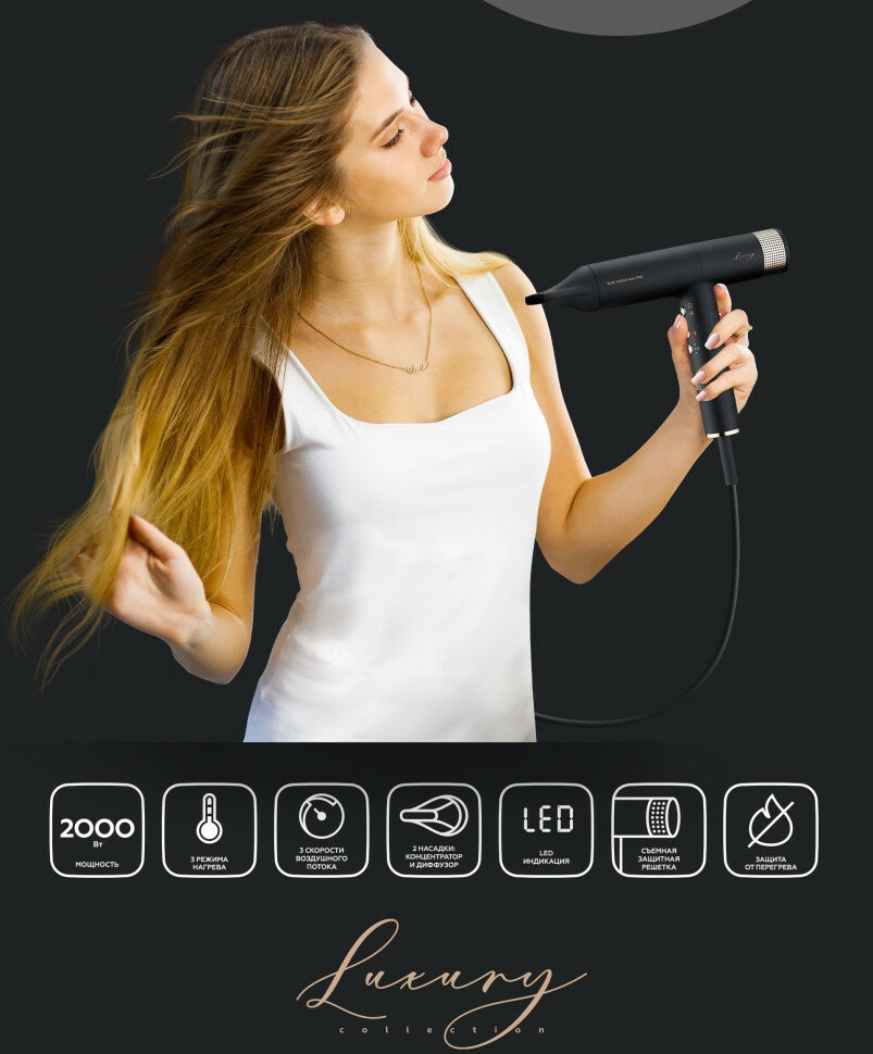 | Дополнительная информация | функция самоочистки, инфракрасная технология прогрева волос, мотор BLDC 110000 об/мин, II класс защиты от поражения электротоком |