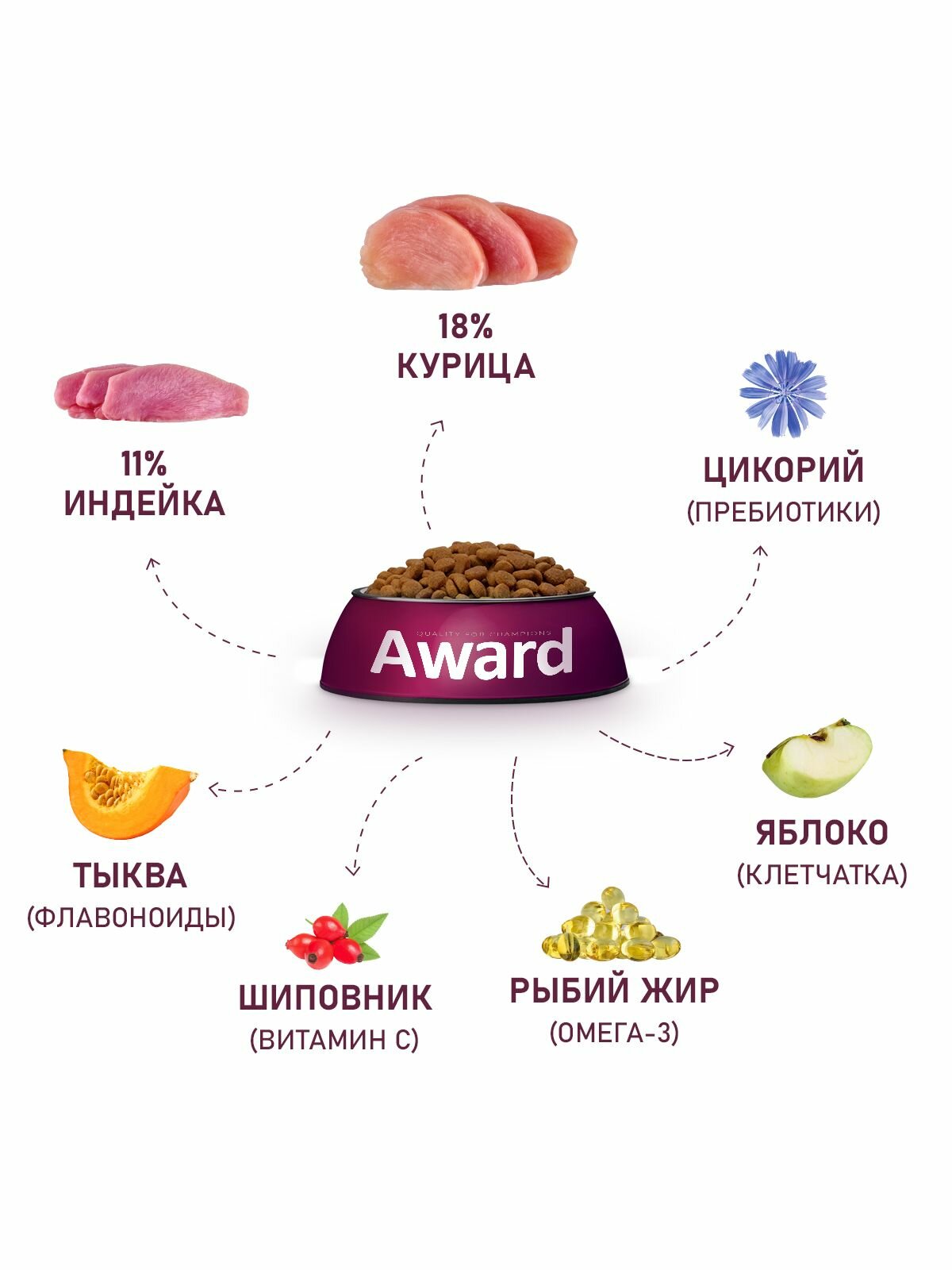 AWARD Сухой корм для взрослых собак крупных пород с курицей и индейкой с добавлением тыквы и шиповника 2кг