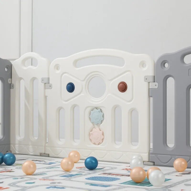 Манеж UNIX Kids "Classic" Grey, серый/белый, 126x120 см, детский игровой манеж из пластика с ковриком для дома и улицы, для мальчиков, для девочек