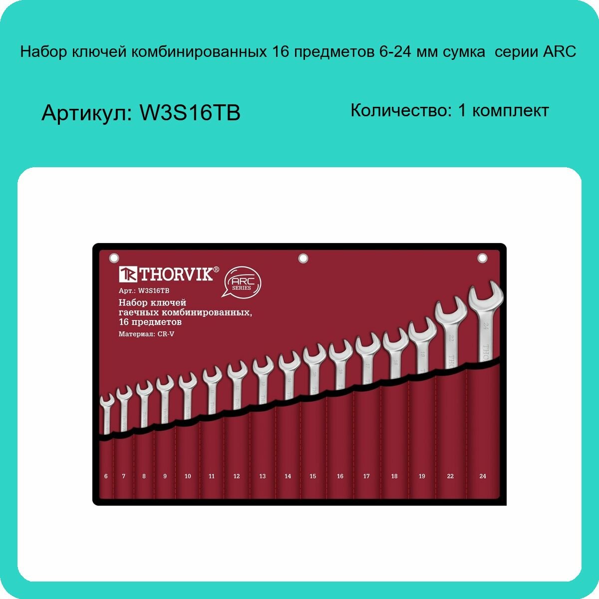 Thorvik W3s16tb Набор ключей гаечных комбинированных серии ARC в сумке, 6-24 мм, 16 предметов 52607 .