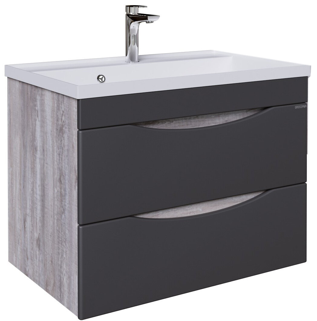 Тумба под раковину Grossman Талис 80 108013 подвесная Бетон пайн Серая