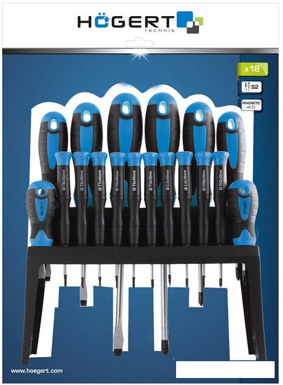 Набор отверток 18 шт., сталь S2 HOGERT интересное: