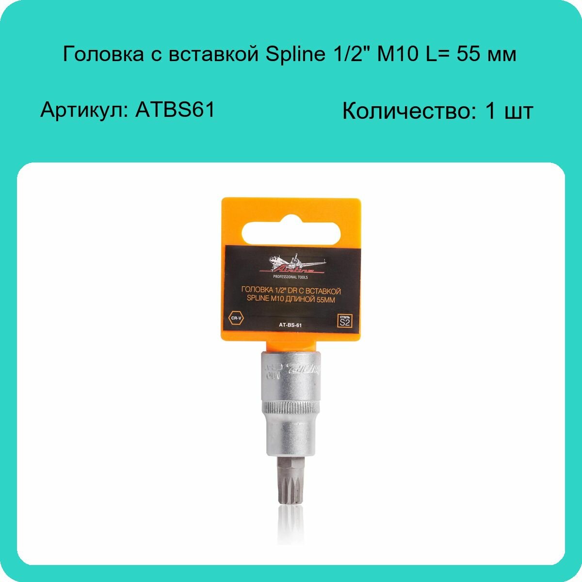 Головка 1/2" DR с вставкой SPLINE M10 длиной 55мм (AT-BS-61)