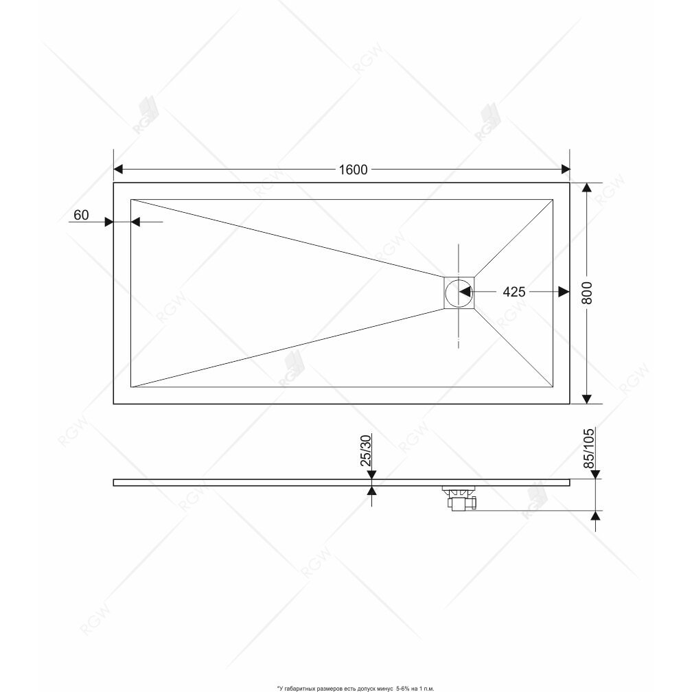 Душевой поддон RGW 80х160х2,5 см ST-0168G Графит, Прямоуг Ø90 Каменный (16152816-02) интересное: