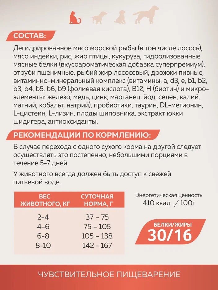 | Особые потребности | гипоаллергенный / при чувствительном пищеварении |