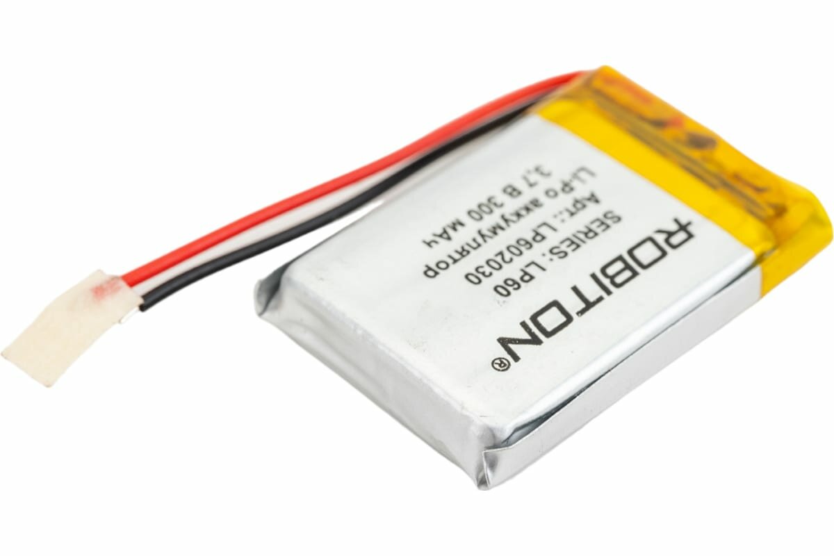 Литий-полимерный аккумулятор Robiton LP602030 300 мАч 3,7 В, с платой защиты, размеры 6 x 20 x 30 мм