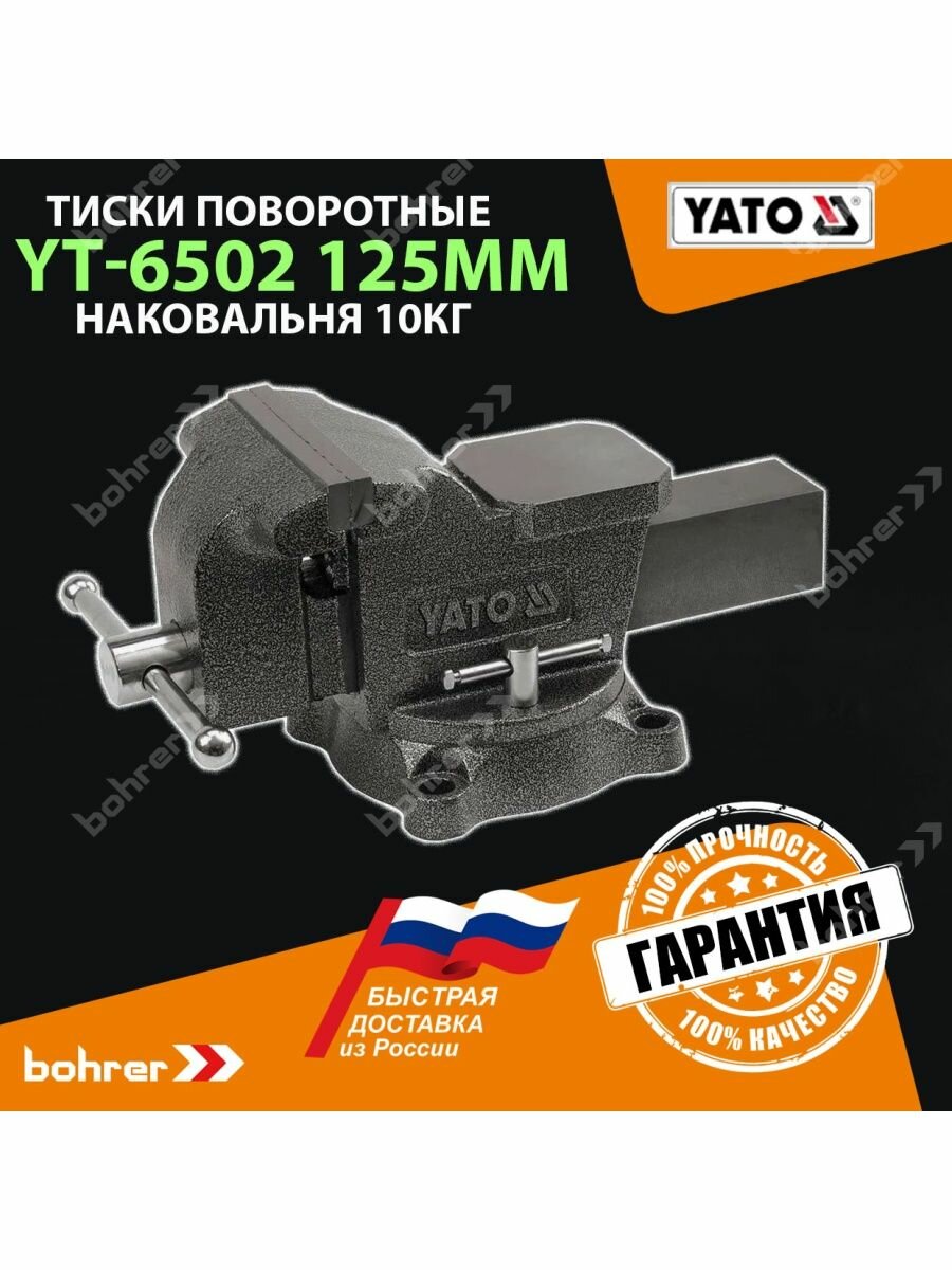 YATO YT6502 Тиски слесарные, поворотные, с наковальней, 125 мм, 10 кг