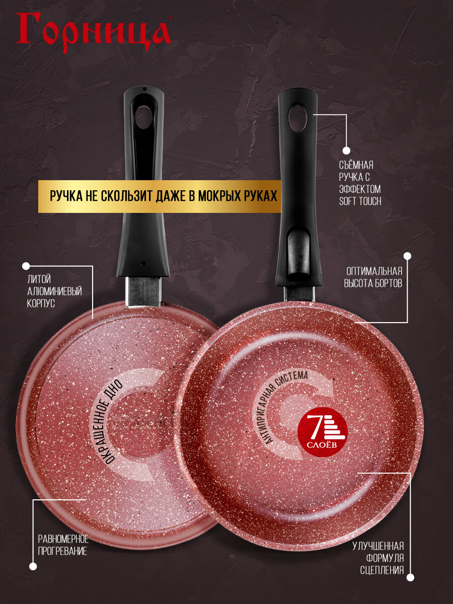 Сковорода Горница Шоколад антиприграрная, съемная ручка 20см (с2054аш)